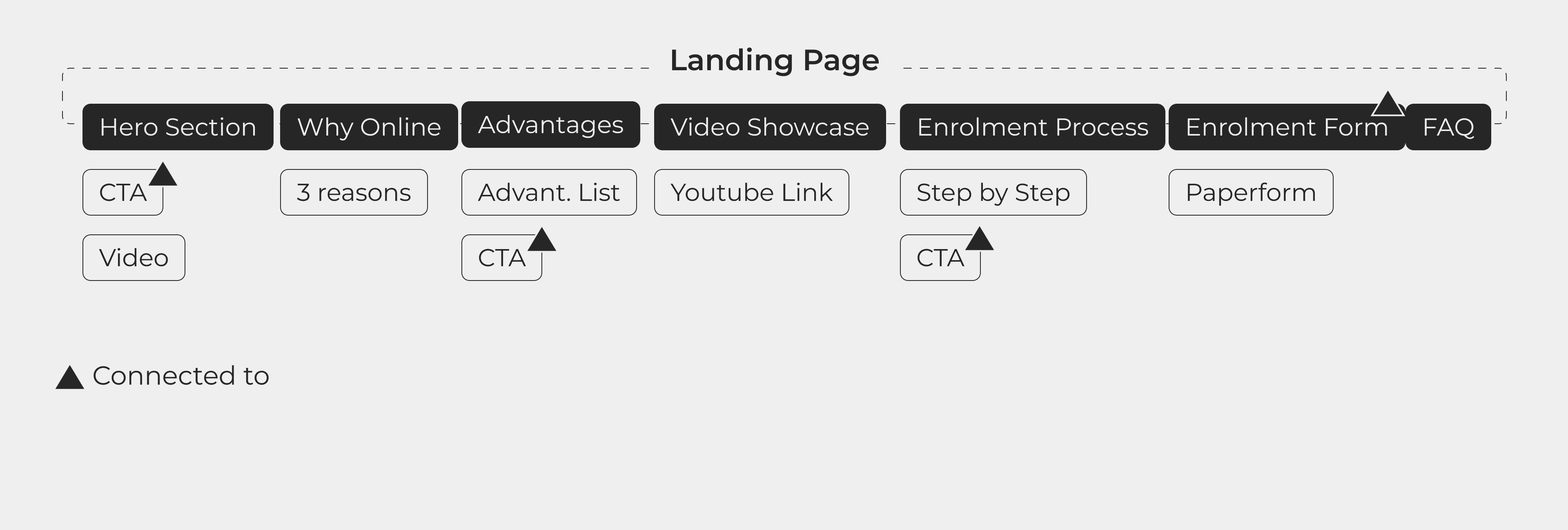 Three Sitemaps were developed for each Website iteration, one for the Landing Page, one for the main website, and one for the Webinar Page.