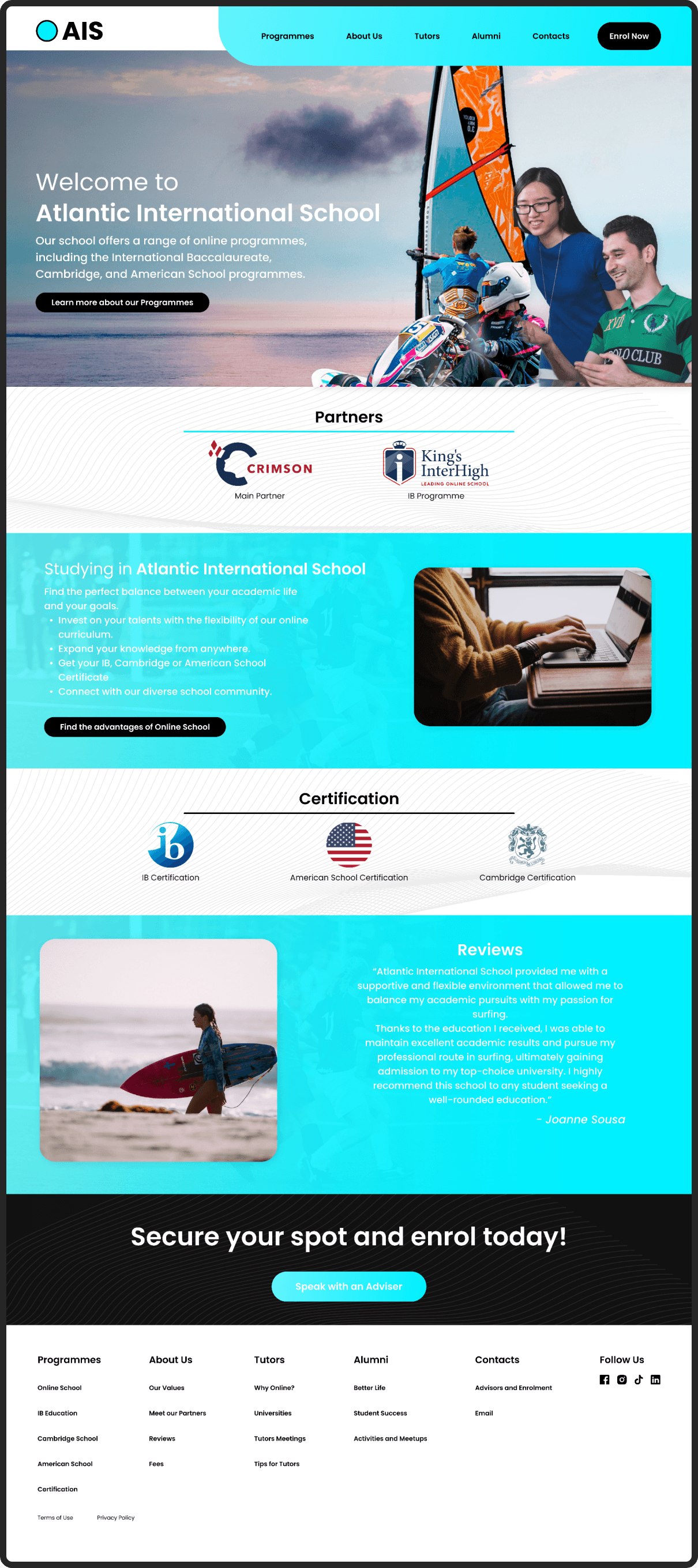 Atlantic International Online School embarked on a fast-paced website development project to meet the impending student enrollment period.