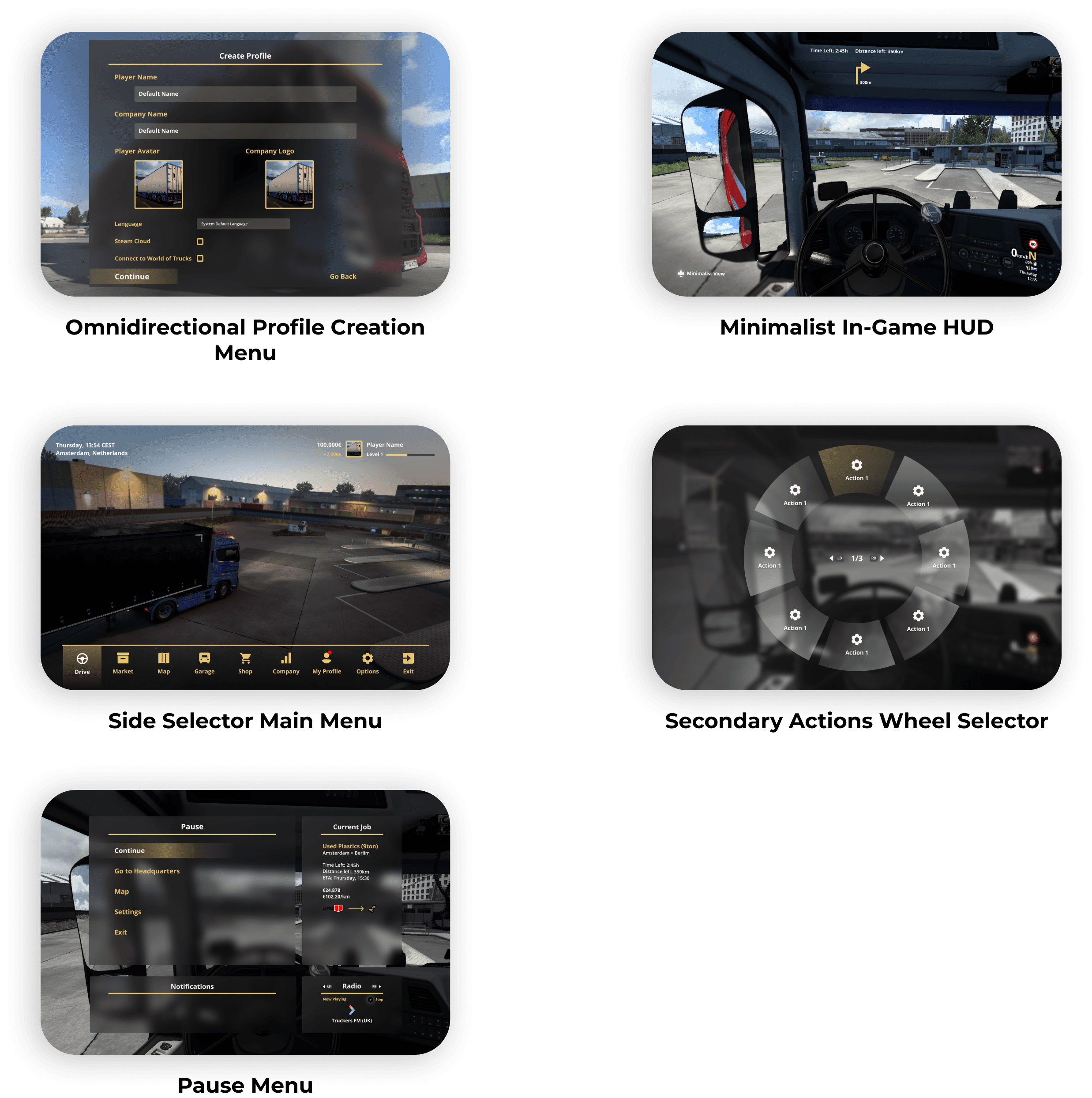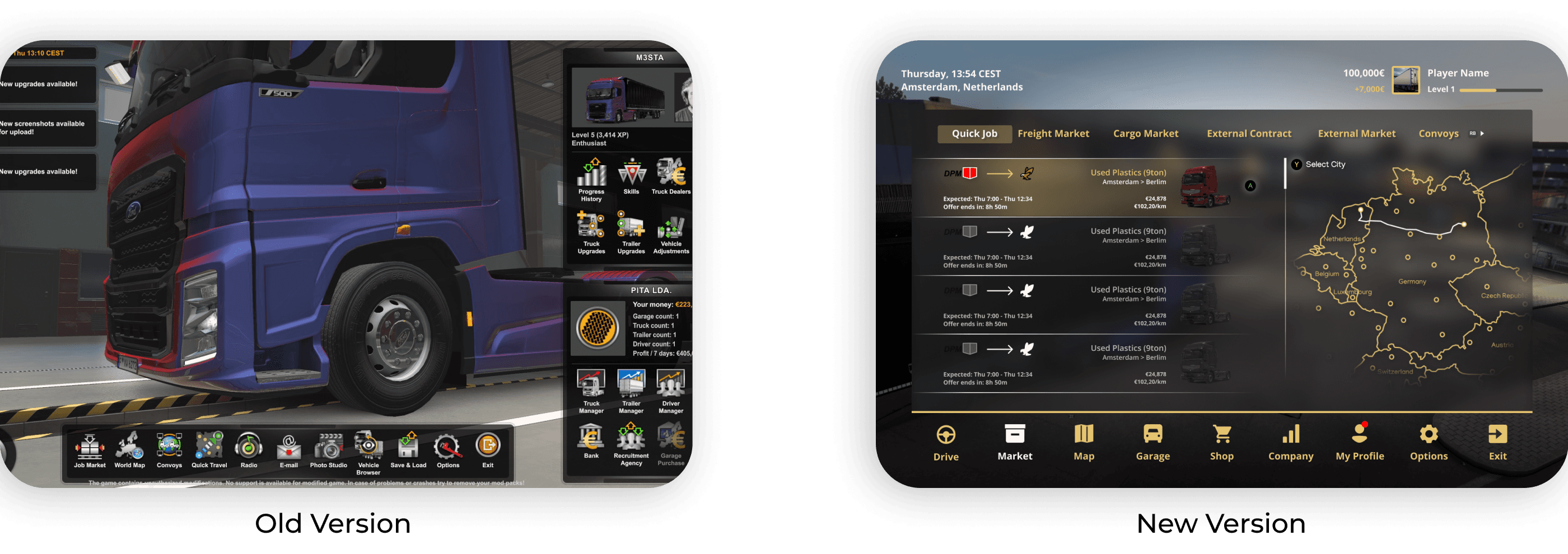 However, the same cannot be said for its user interface (UI). Recognizing the potential for a successful console port of ETS2, I undertook the challenge of redesigning an unofficial UI for the game.