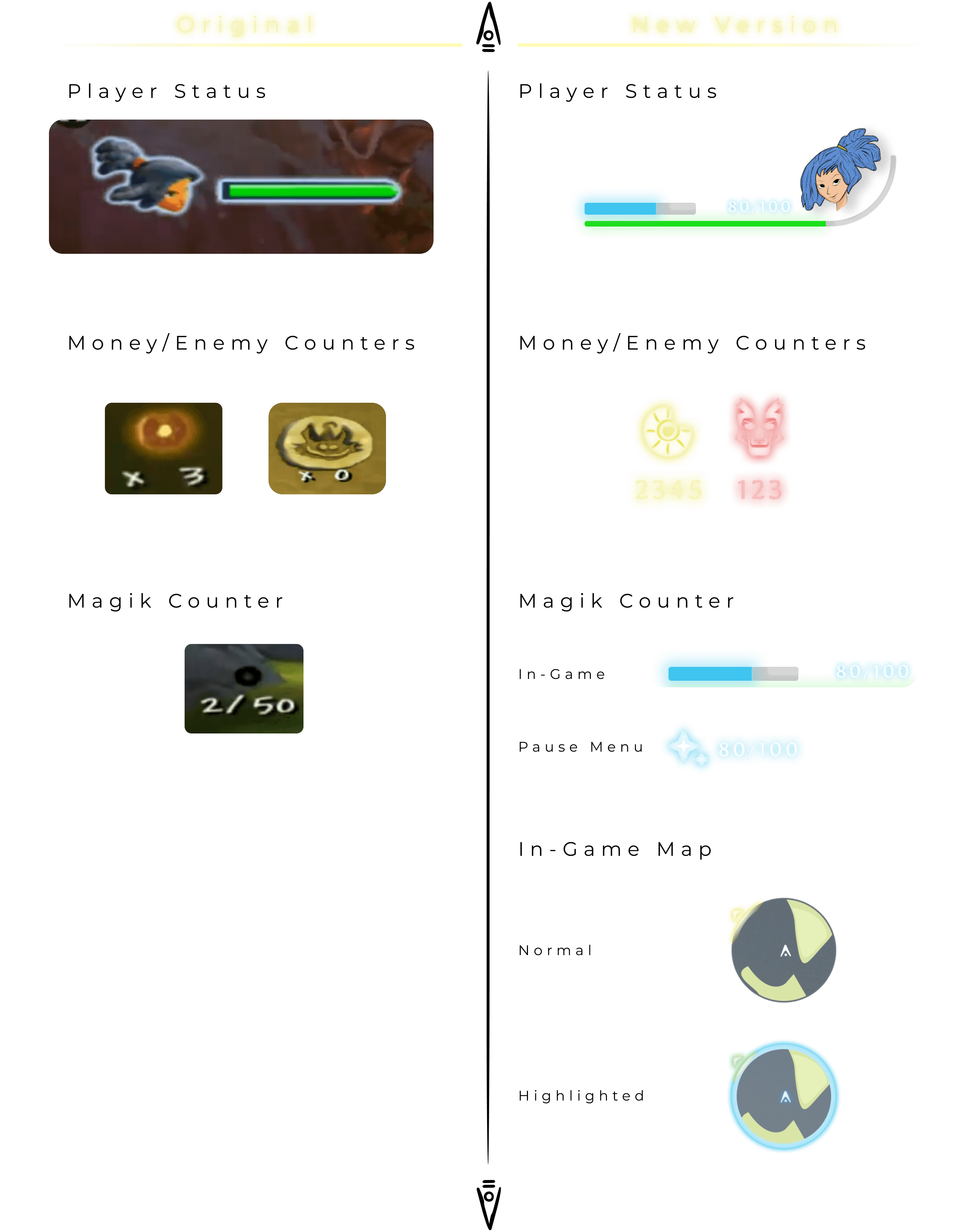 Drawing inspiration from renowned games such as Dark Souls, God of War (2018), Ratchet & Clank: Rift Apart, and Kingdom Hearts 2.8 HD, we aimed to infuse the Kya: Unknown Worlds UI with fresh creativity and innovation while remaining true to the essence of the original game.