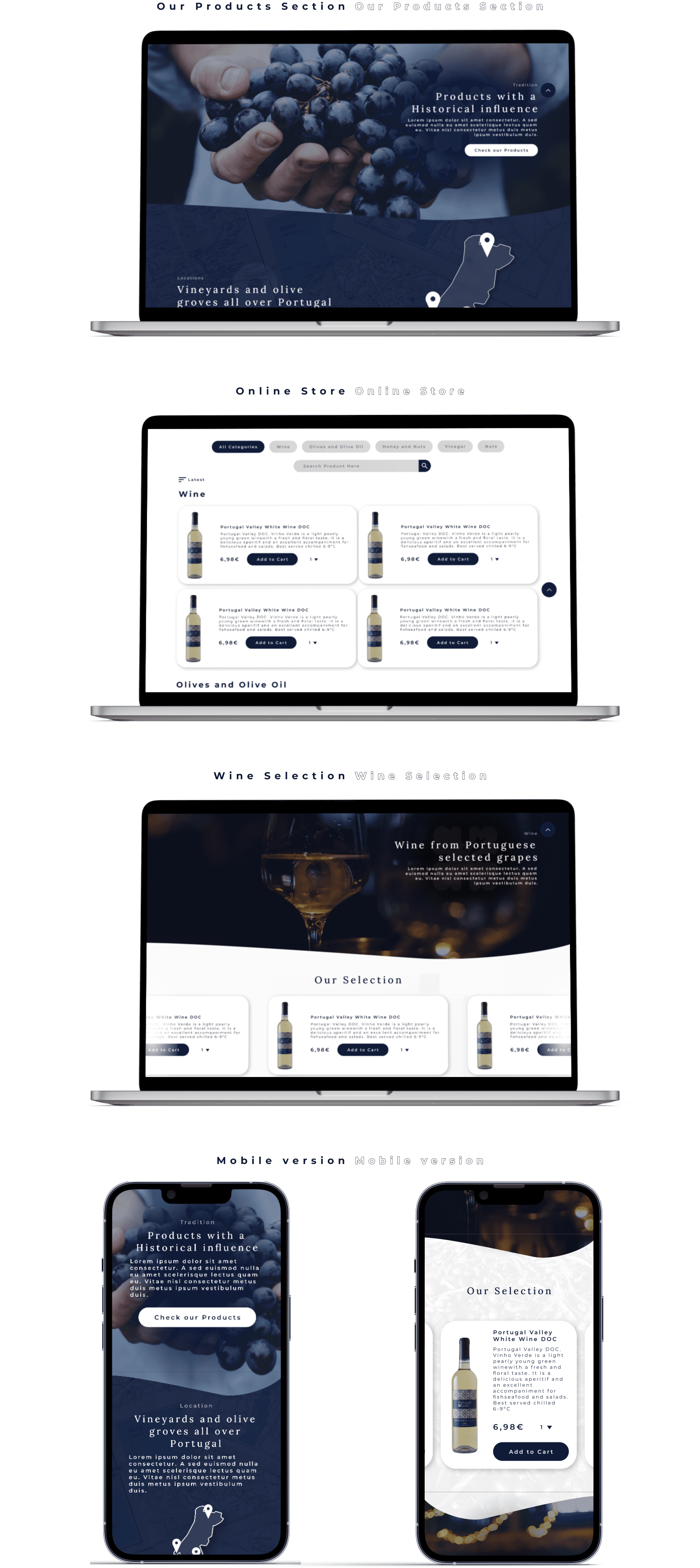 The Sitemap we developed places a strong emphasis on showcasing the richness of Portuguese culture and cuisine, skillfully weaving together the distinctiveness of Portuguese products, such as wine and olive oil, with the Portugal Valley brand. Unlike the previous version of the website, which primarily centred on product listings, this new iteration aims to transform into a compelling infomercial. It aspires to not only inform but also captivate visitors, inviting them to immerse themselves in the vibrant world of Portuguese traditions and flavours.
